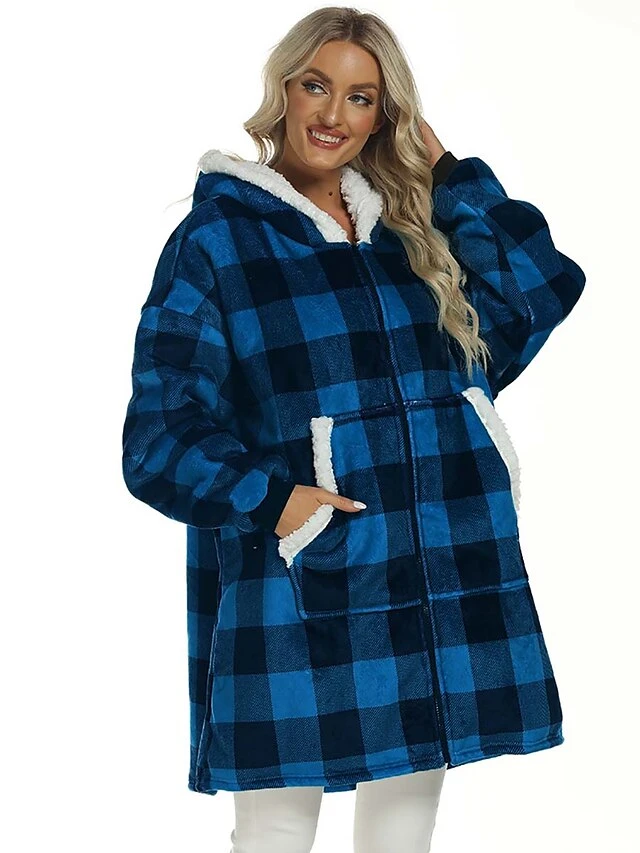 Women’s Pajamas Loungewear Nightgown Sleepwear Buffalo Plaid Fashion Sport Simple Home Daily Bed Polyester Warm Pullover Long Sleeve Hoodie Fall Winter Red Blue