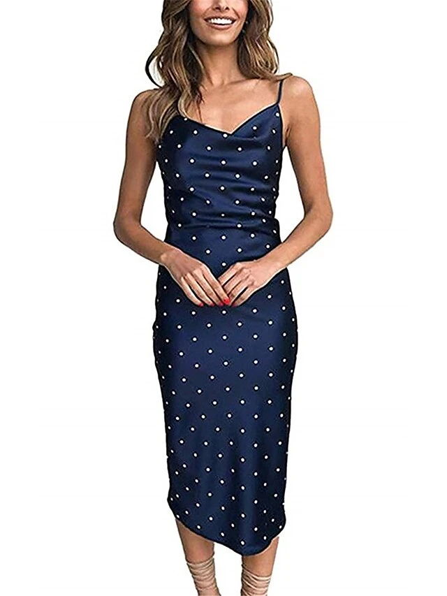 Women’s Pajamas Nightgown Nightshirt Dress Leopard Dot Fashion Casual Soft Home Daily Bed Satin Breathable Straps Sleeveless Spring Fall Pink Navy Blue
