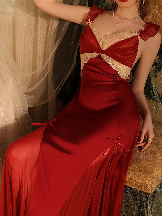 Women’s Pajamas Nightgown Nightshirt Dress Pure Color Hot Comfort Sweet Home Daily Bed Satin Breathable Straps Sleeveless Backless Fall Winter Black Light Green