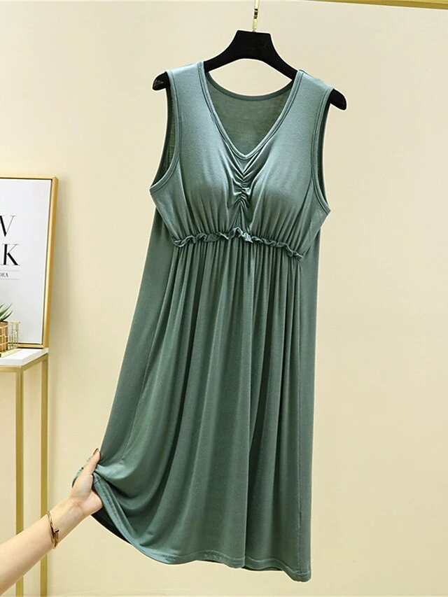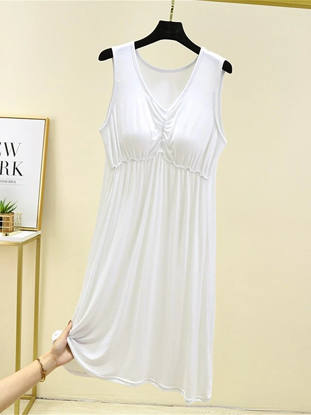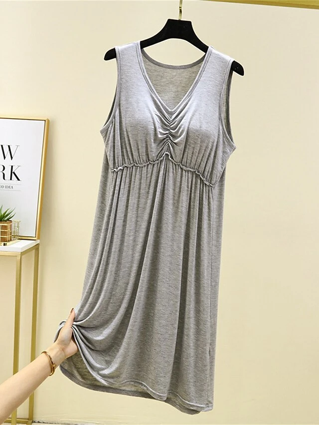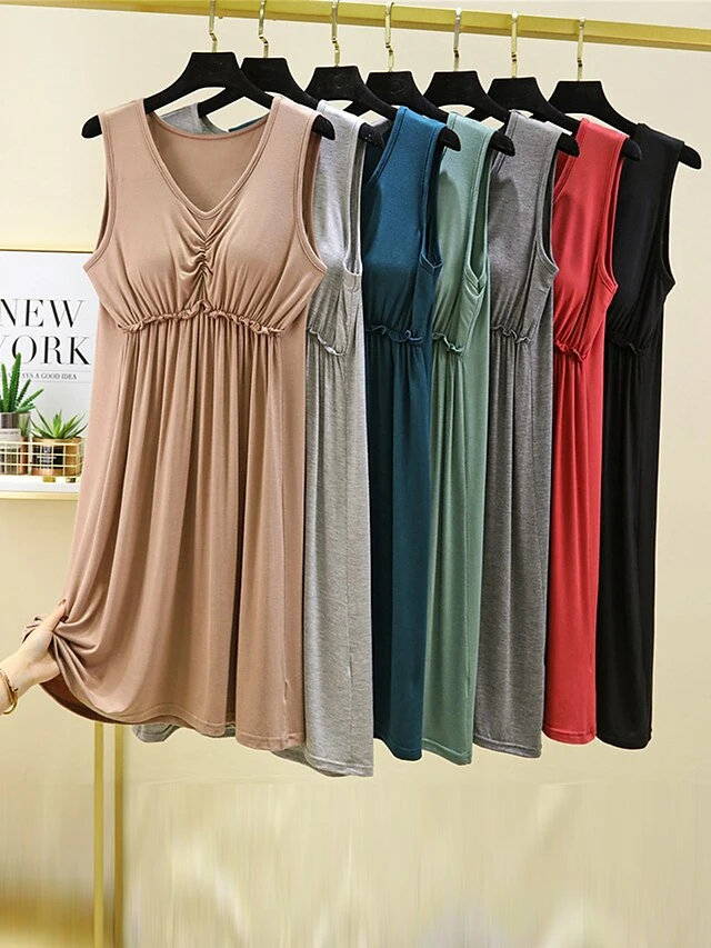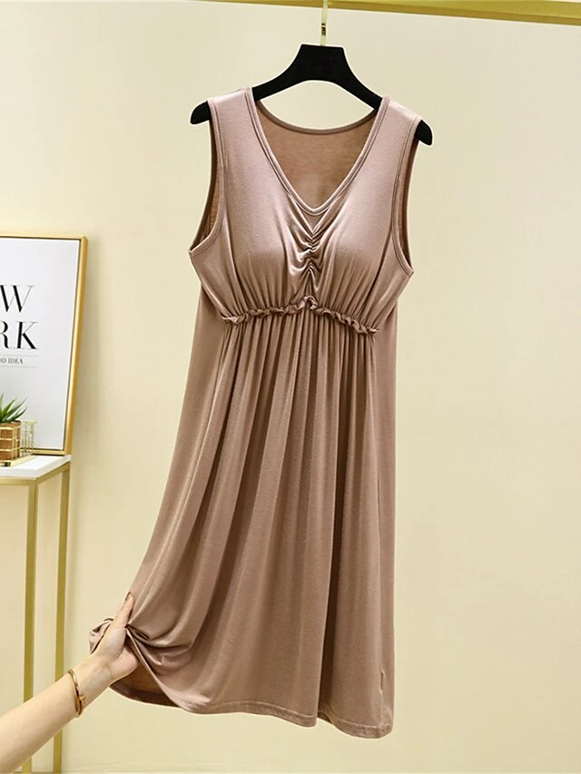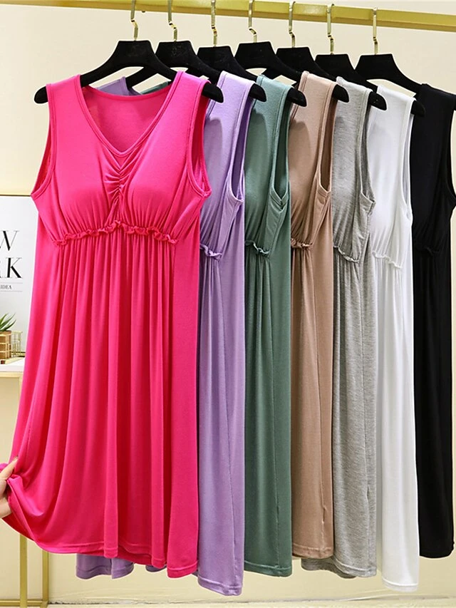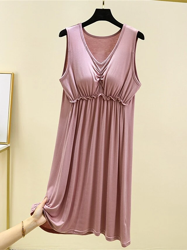 Women’s Pajamas Nightgown Nightshirt Dress Pure Color Simple Casual Comfort Home Daily Bed Modal Breathable V Wire Sleeveless Chest Pads Summer Spring Lotus Pink Black