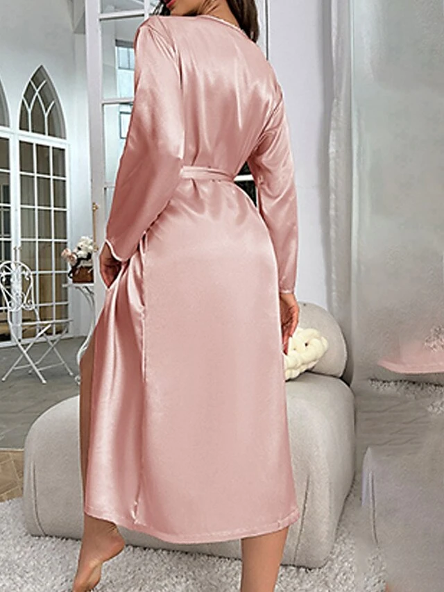 Women’s Pajamas Nightgown Nightshirt Dress Pure Color Simple Casual Soft Home Daily Bed Polyester Breathable V Wire Long Sleeve Summer Fall Black Pink
