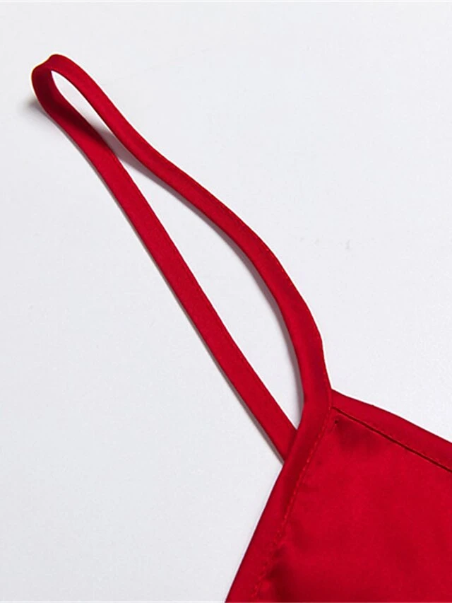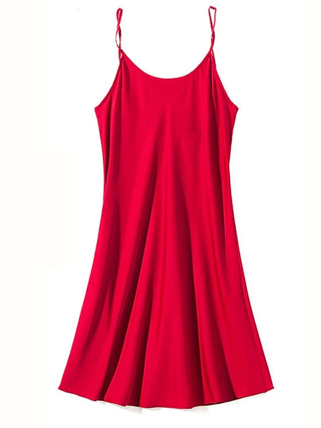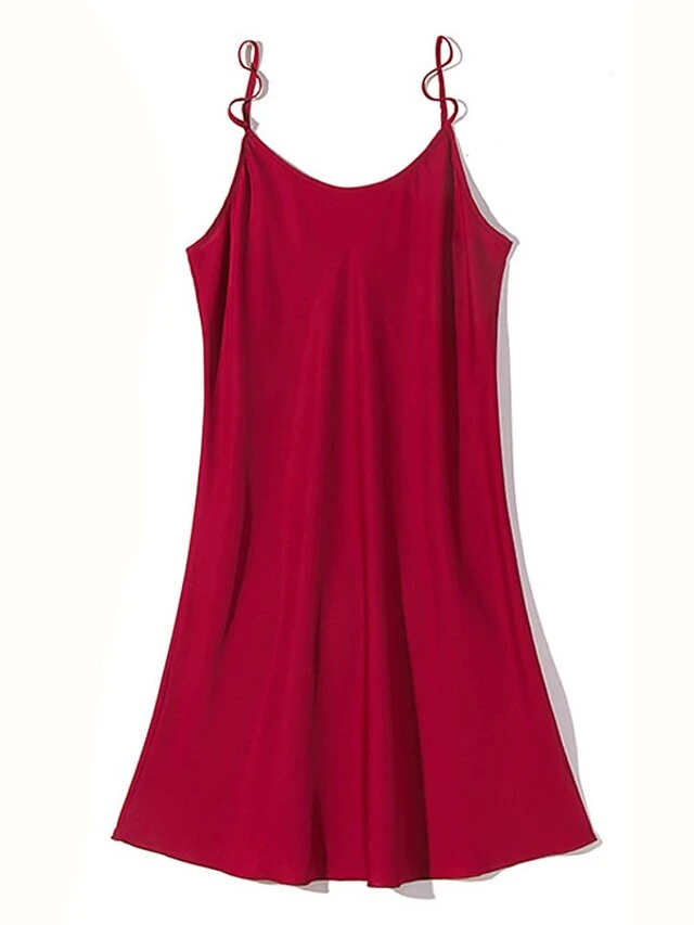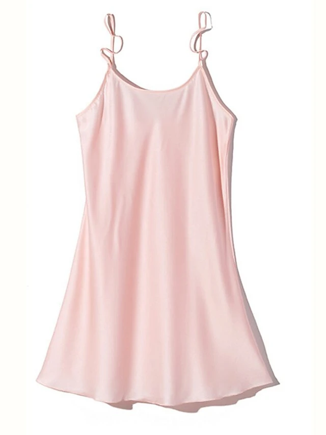 Women’s Pajamas Nightgown Nighty Pjs 1 PCS Pure Color Fashion Ultra Slim Comfort Home Christmas Daily Satin Breathable Gift Straps Sleeveless Backless Split Summer Spring Light Pink Champagne