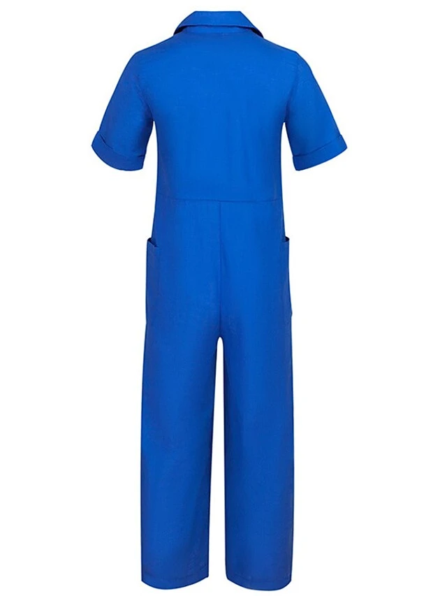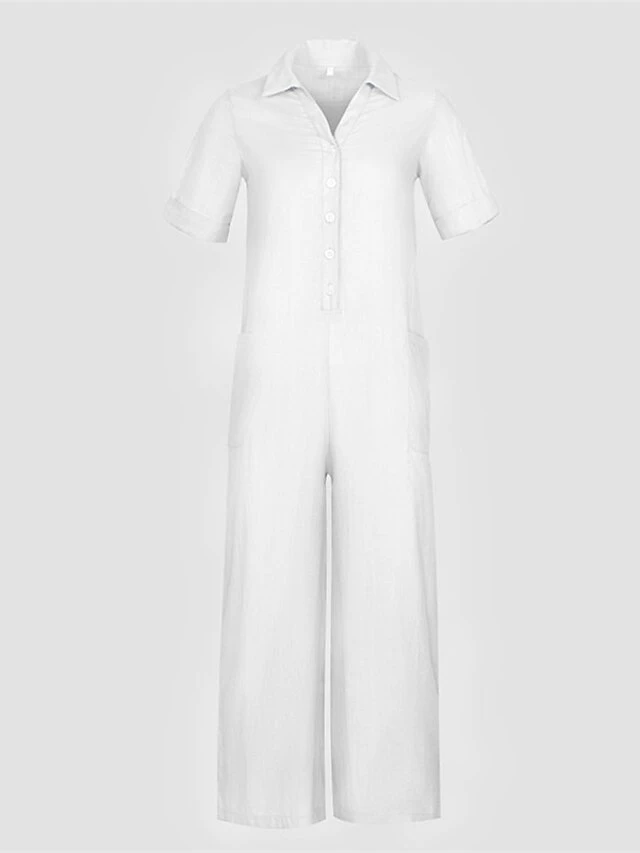 Women’s Pajamas Onesies Jumpsuits Nighty Pure Color Simple Comfort Home Street Cotton Lapel Short Sleeve Spring Summer Wine Navy Blue / Pjs