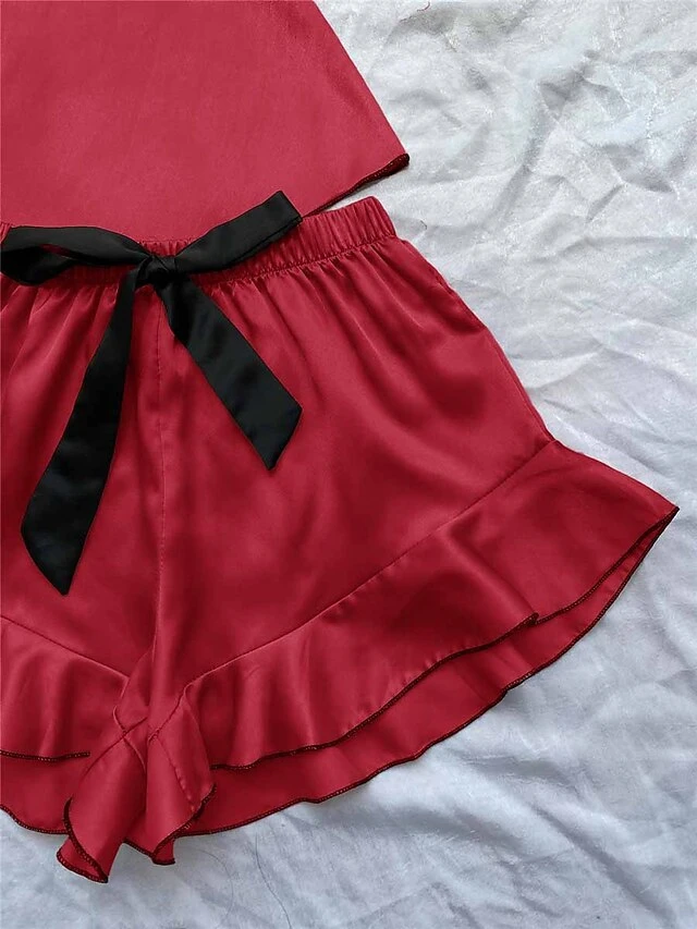 Women’s Pajamas Pajama Top And Pant Sets Pure Color Simple Casual Soft Home Daily Bed Satin Breathable Straps Short Sleeve Strap Top Shorts Summer Spring Lotus Pink Black
