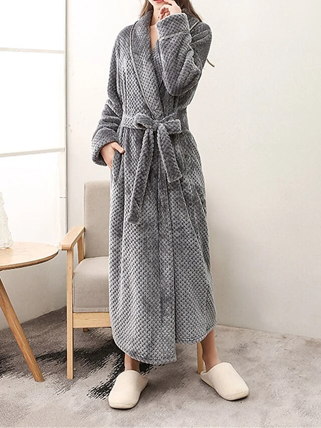 Women’s Pajamas Robe Bathrobe Pure Color Plush Casual Comfort Home Daily Bed Polyester Warm V Wire Long Sleeve Fall Winter White Pink