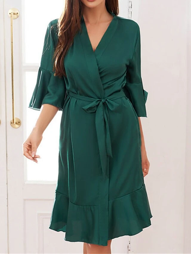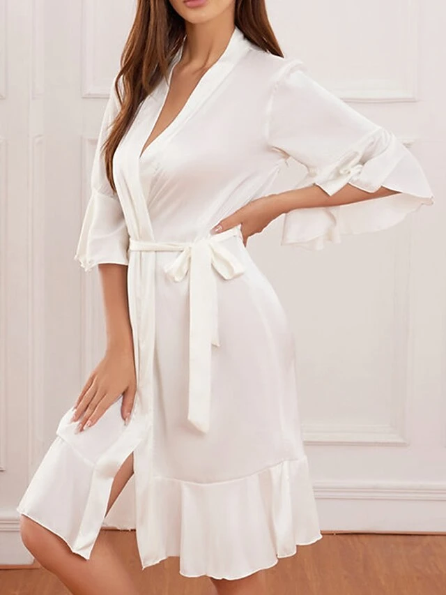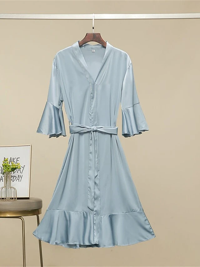 Women’s Pajamas Robe Bathrobe Silk Robe Pure Color Fashion Comfort Wedding Party Satin Breathable V Wire Half Sleeve Summer Fall Light Pink Light Blue