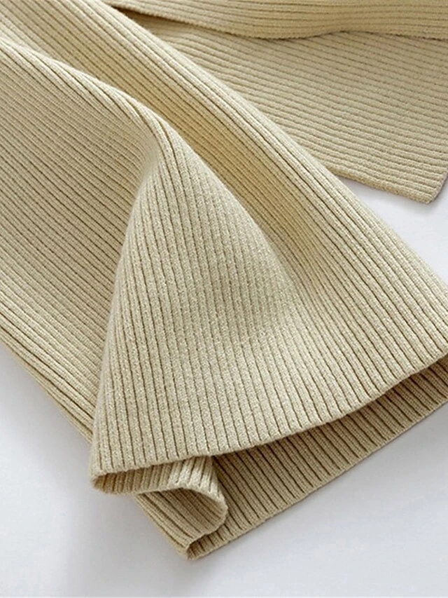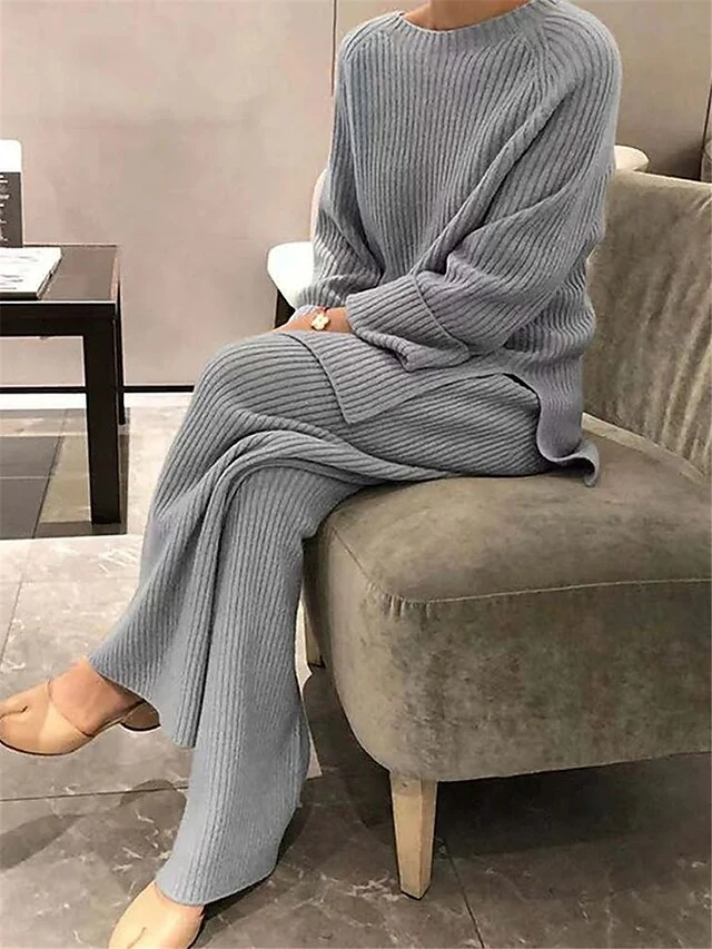 Women’s Pajamas Sets Pure Color Fashion Casual Soft Home Daily Bed Knit Breathable Crew Neck Long Sleeve Pant Fall Winter Black Blue