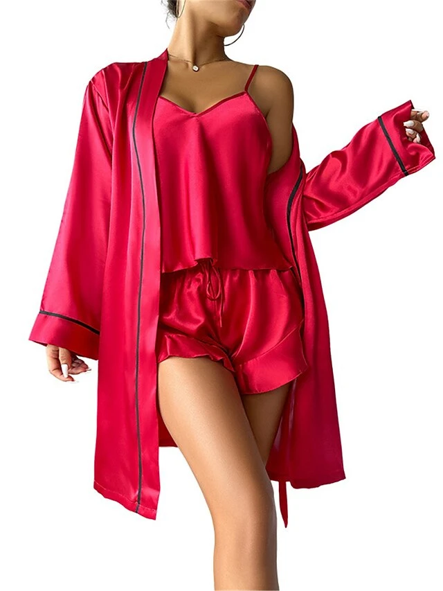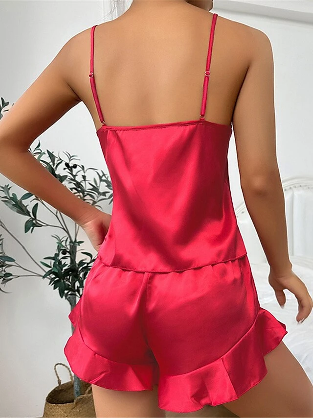 Women’s Pajamas Sets Pure Color Fashion Comfort Soft Home Daily Bed Satin Breathable Straps Short Pant Strap Top Shorts Elastic Waist Fall Winter Pink Red