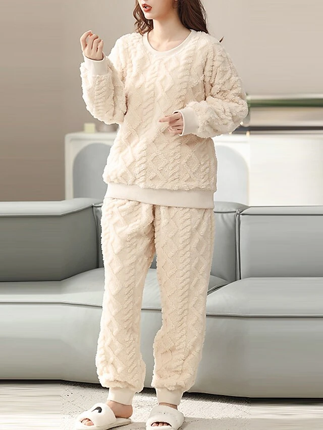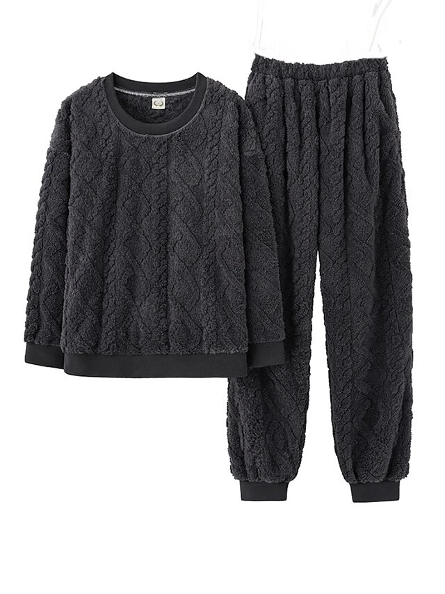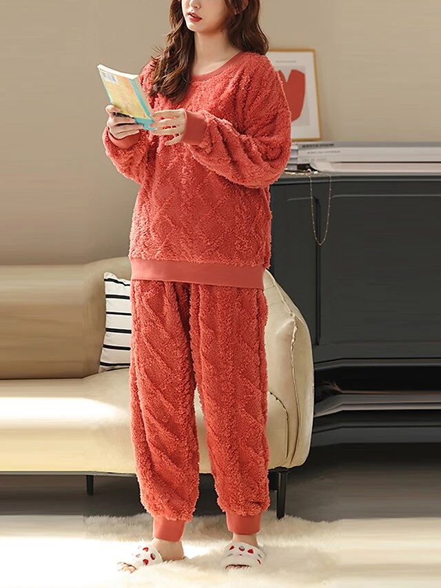 Women’s Pajamas Sets Pure Color Warm Fashion Casual Home Daily Bed Flannel Warm Breathable Crew Neck Long Sleeve Hoodie Pant Pocket Elastic Waist Fall Winter Light Pink Black