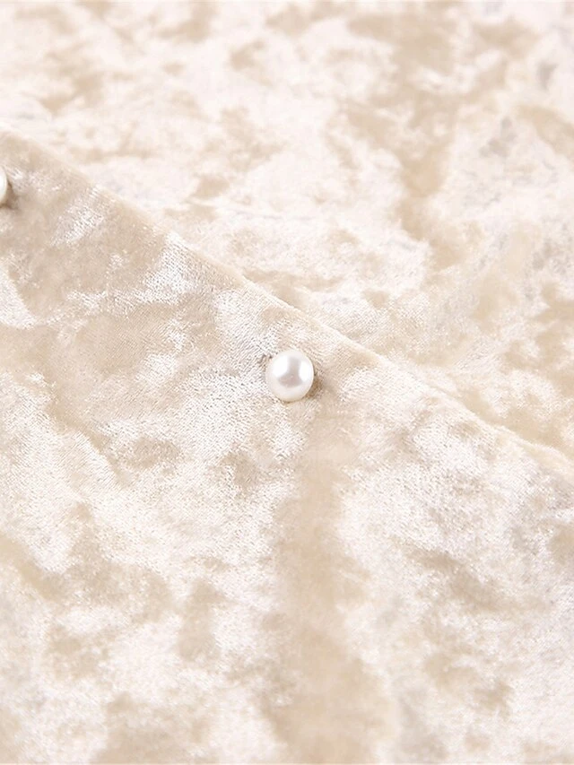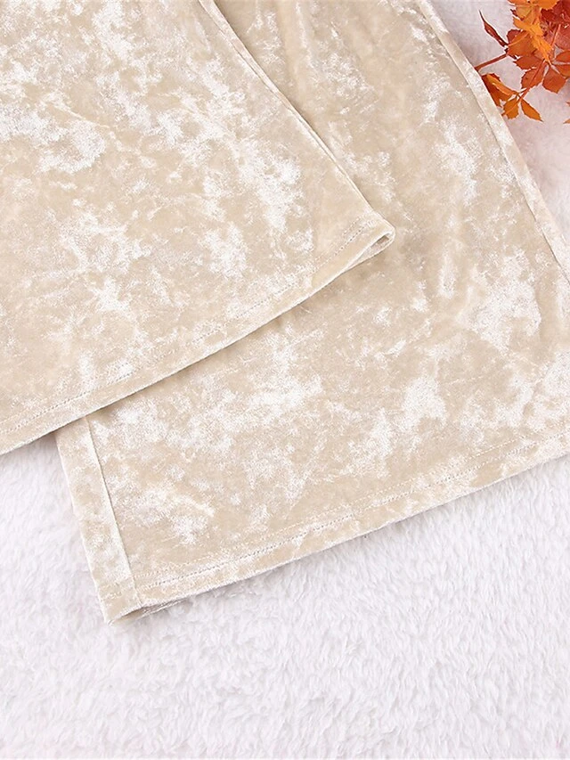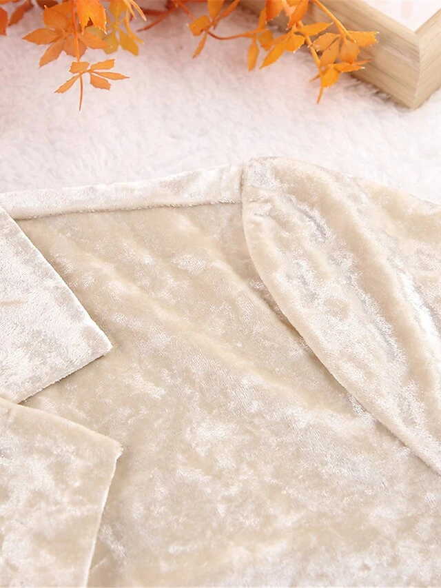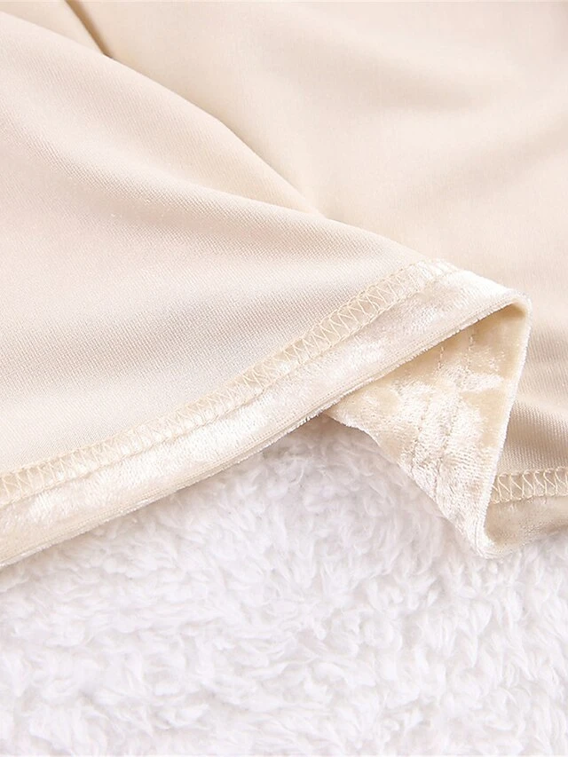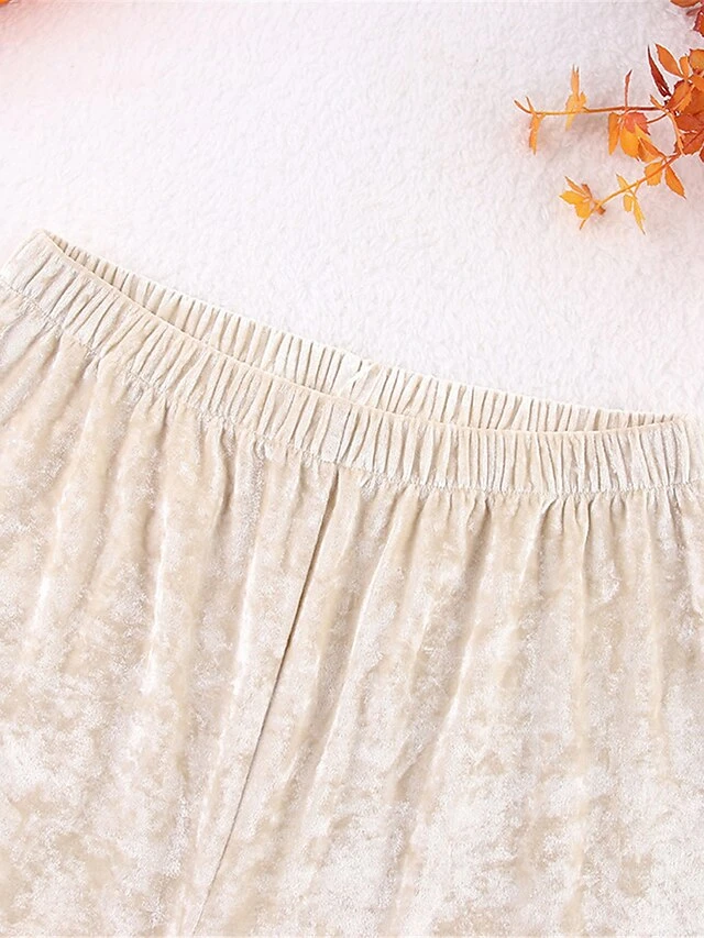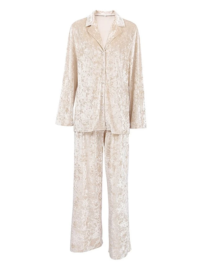 Women’s Pajamas Sets Pure Color Warm Fashion Casual Home Daily Bed Velvet Warm Breathable Lapel Long Sleeve Shirt Pant Button Fall Winter Beige