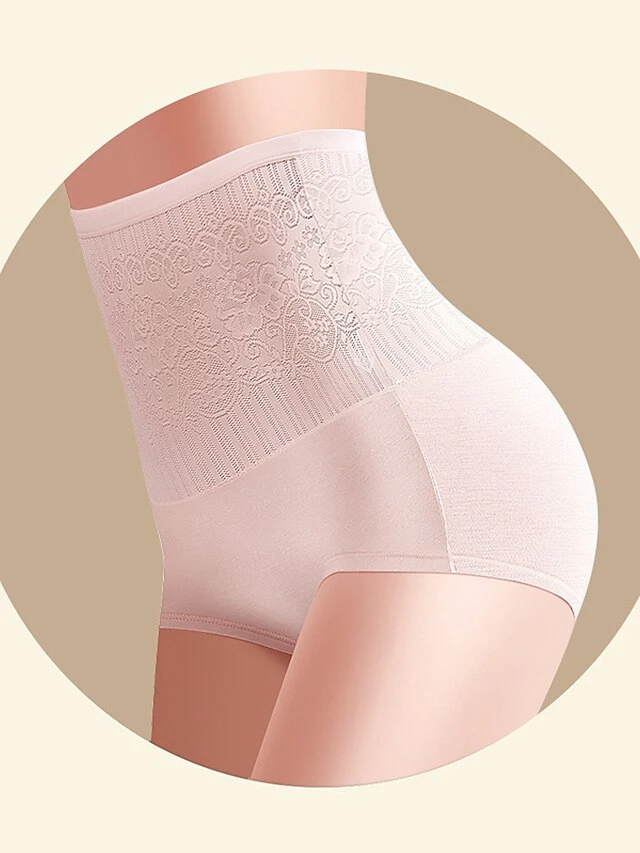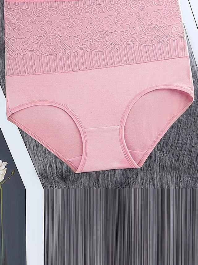 Women’s Panties Waist Trainer Pure Color Undergarments Comfort Home Daily Bed Polyester Breathable Elastic Waist Summer Spring Lotus Pink Black