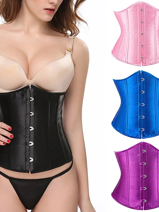 Women’s Pink Corsets Shapewear Pure Color Corsets Party Christmas Date Satin Breathable Sleeveless Backless Summer Spring Black White