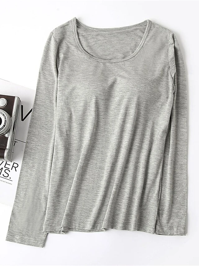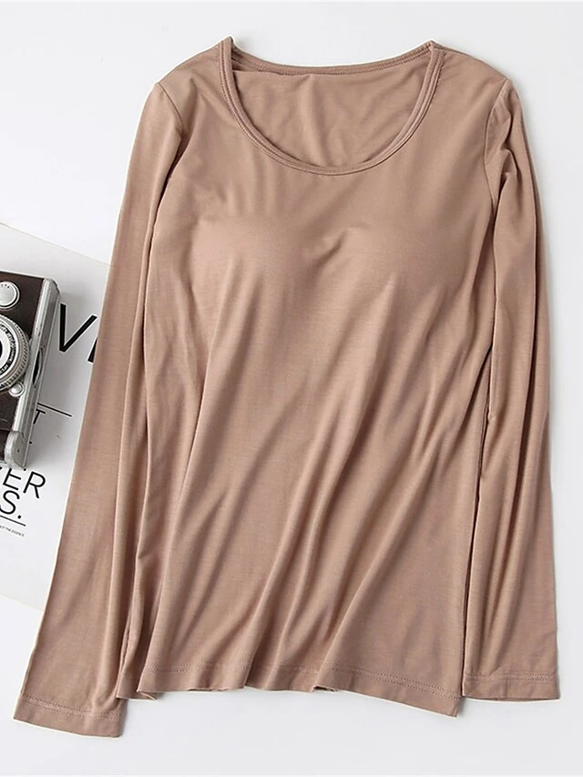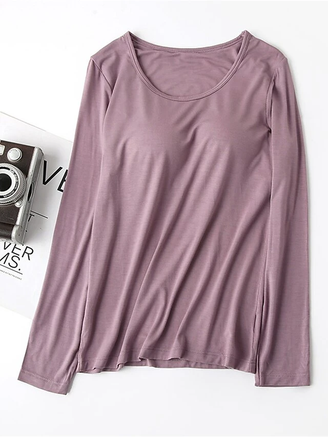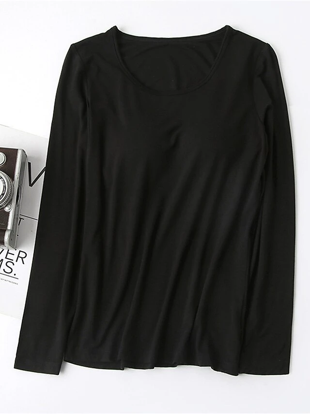 Women’s Pink Pajama Top With Chest Pads Loungewear Top Pure Color Fashion Casual Comfort Street Daily Bed Modal Breathable Crew Neck Long Sleeve Fall Winter Black White