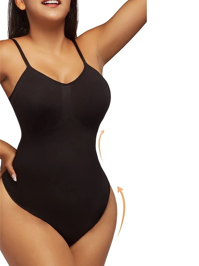 Women’s Plus Size Bodysuits Body Shaper Pure Color Fashion Hot Vacation Gyms Nylon Breathable Straps Sleeveless Backless Summer Spring Black Long Black Briefs