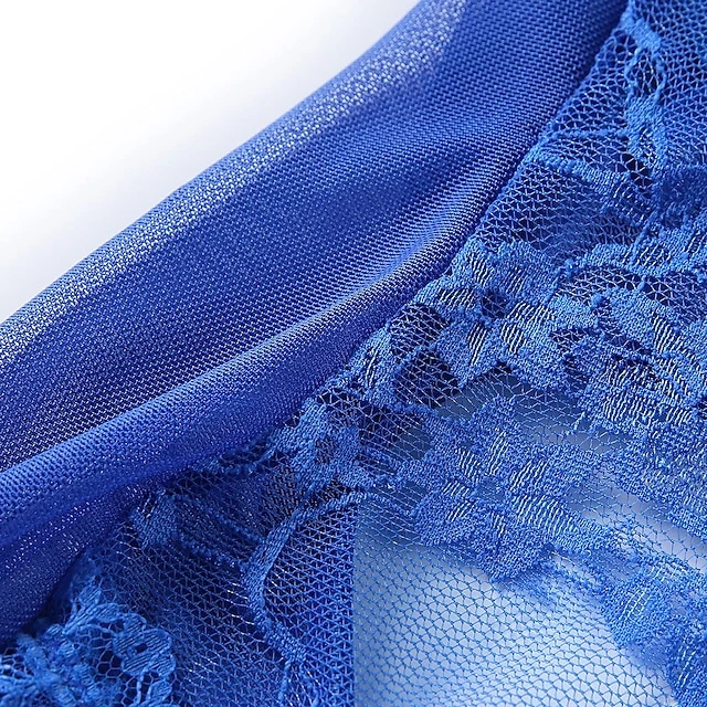 Women’s Plus Size Bodysuits Teddies & Bodysuits Geometic Undergarments Bed Lace Short Sleeve Winter Fall Black Blue