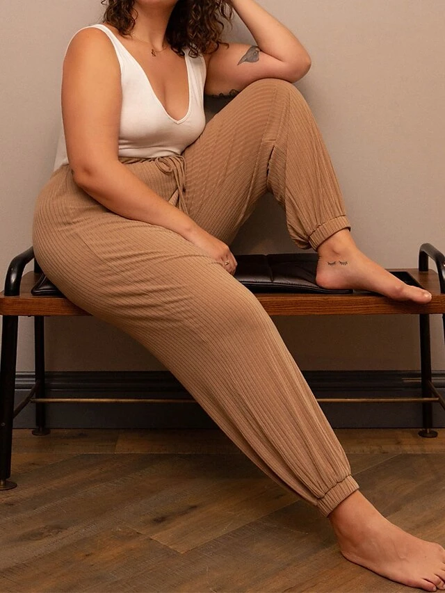 Women’s Plus Size Loungewear Pants Pure Color Sport Simple Casual Home Daily Going Out Polyester Comfort Elastic Waist Fall Winter Khaki