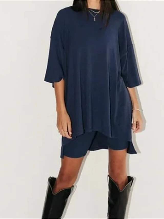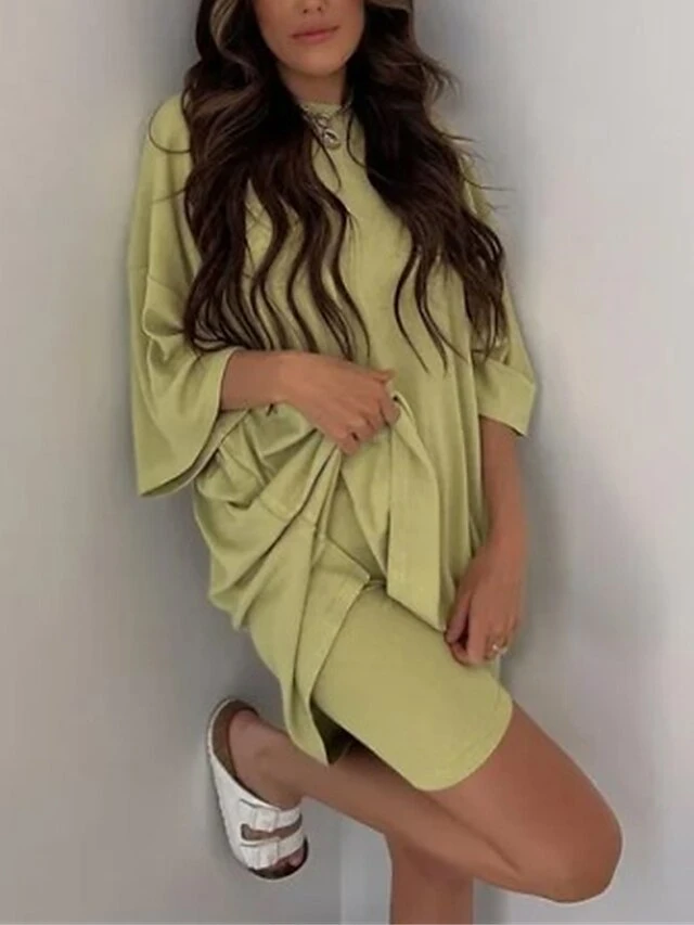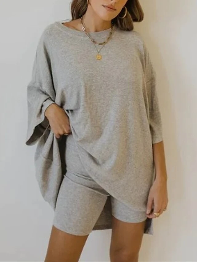 Women’s Plus Size Loungewear Sets 2 Pieces Pure Color Fashion Casual Comfort Street Daily Date Polyester Breathable Crew Neck Long Sleeve Shorts Summer Fall Black Red