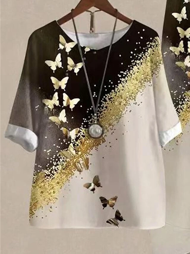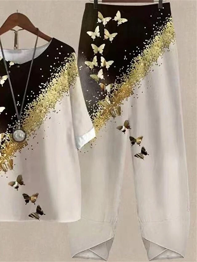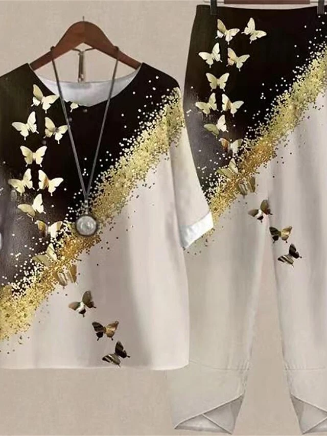 Women’s Plus Size Loungewear Sets Butterfly Simple Casual Comfort Home Daily Vacation Polyester Breathable Crew Neck Half Sleeve T Shirt Tee Pant Spring Summer Khaki