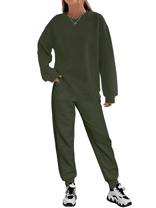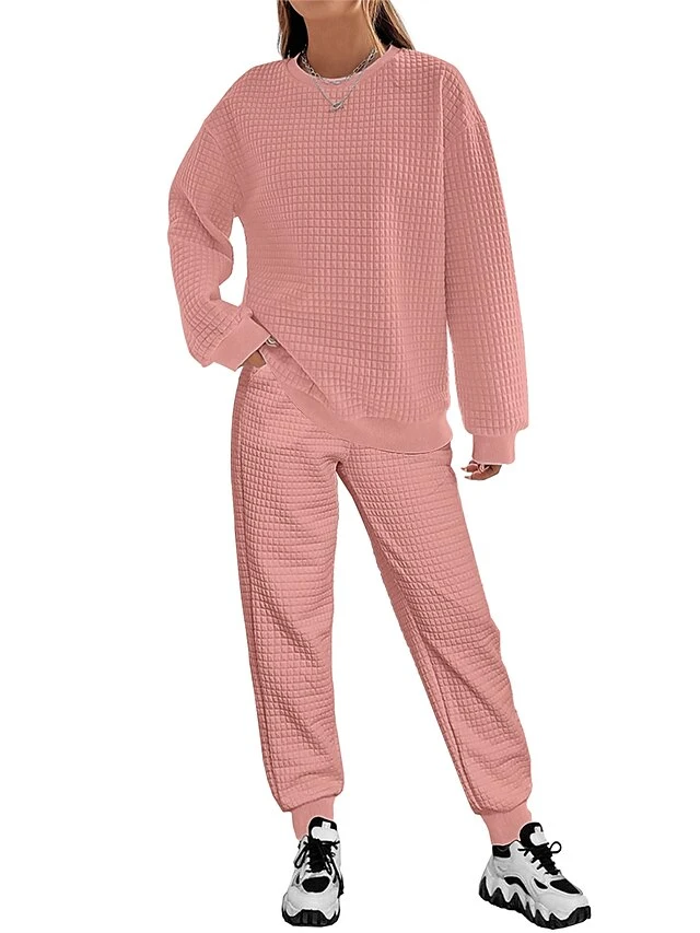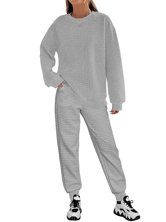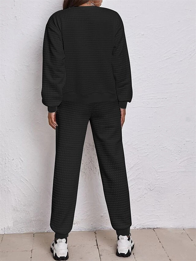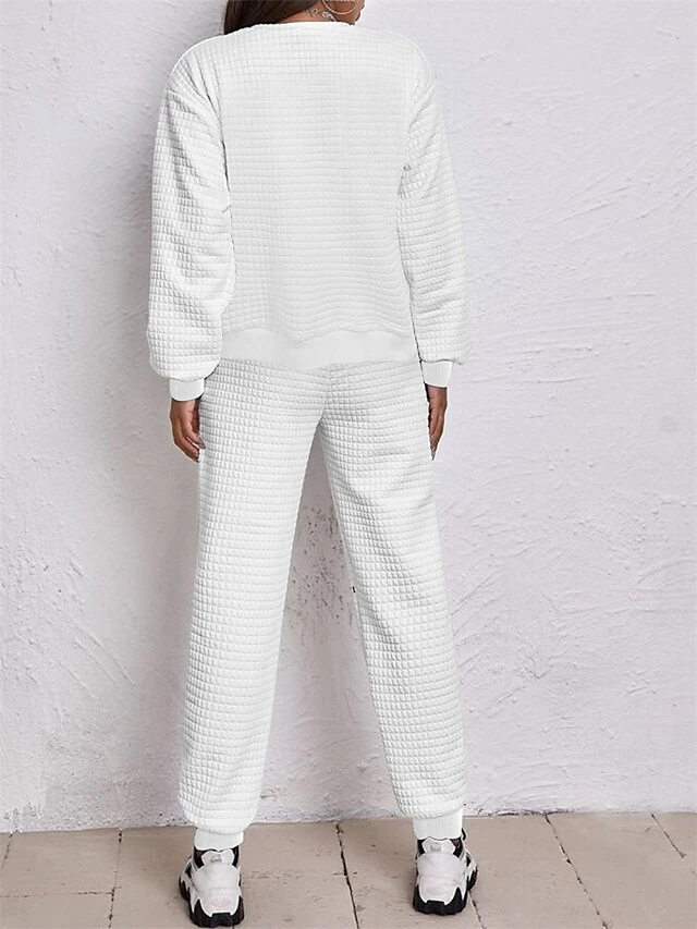 Women’s Plus Size Loungewear Sets Pure Color Fashion Casual Comfort Home Street Daily Polyester Breathable Crew Neck Long Sleeve Hoodie Pant Fall Winter Black White