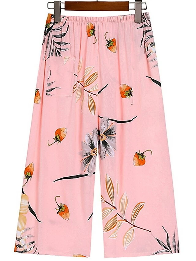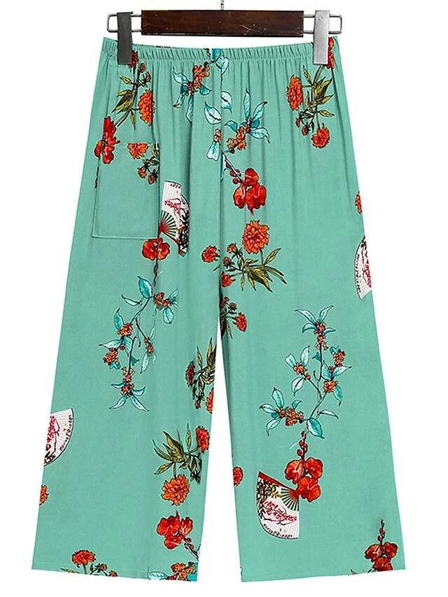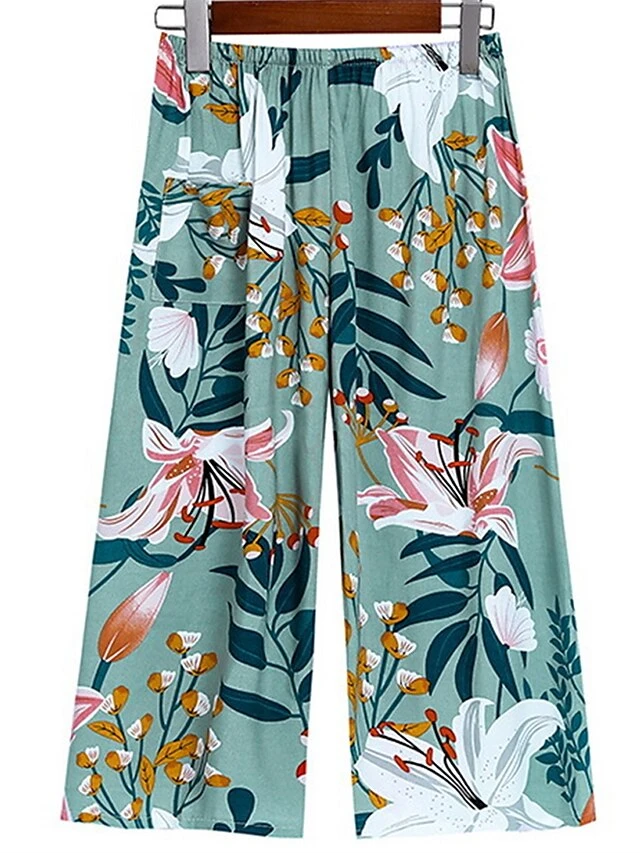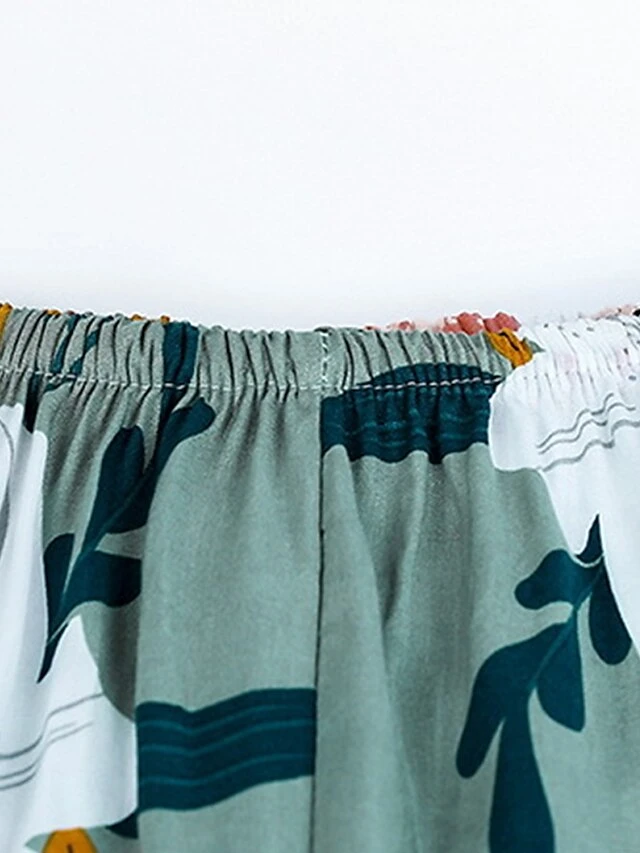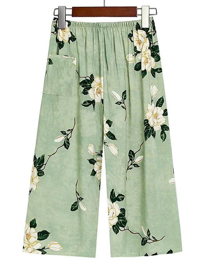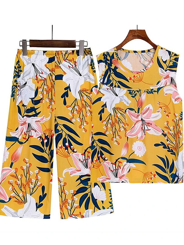 Women’s Plus Size Pajama Cotton Top And Pant Sets 2Pcs Floral Print Fashion Casual Comfort Home Daily Vacation Breathable Crew Neck Sleeveless Tank Top Pants Summer Spring Yellow Light Green