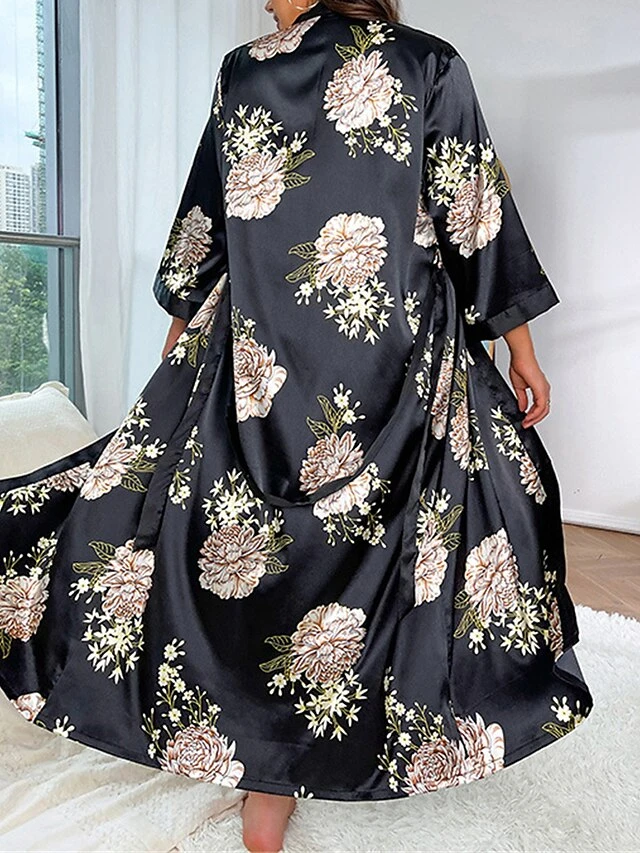 Women’s Plus Size Pajamas Bathrobe Heart Flower Simple Casual Comfort Home Bed Wedding Party Polyester Breathable V Wire Long Sleeve Summer Spring Pink Love Safflower