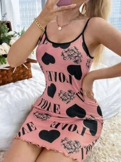 Women’s Plus Size Pajamas Nightgown Dress Heart Letter Fashion Casual Soft Home Daily Bed Polyester Breathable Straps Sleeveless Backless Spring Summer Yellow Red