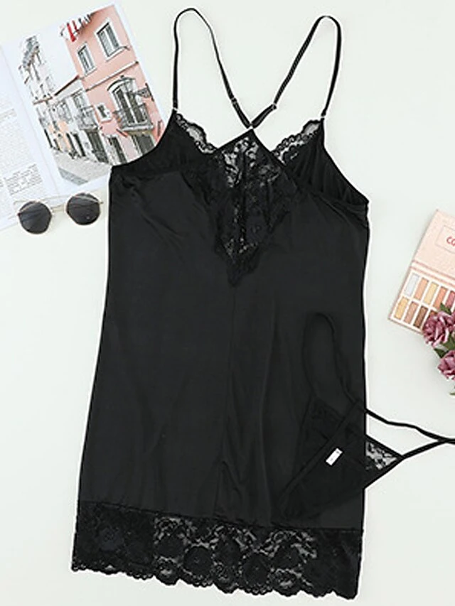 Women’s Plus Size Pajamas Nightgown Nightshirt Dress Pure Color Simple Casual Soft Home Daily Bed Polyester Breathable V Wire Sleeveless Fall Winter Black