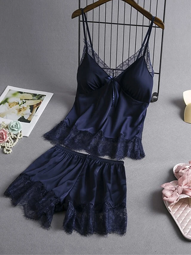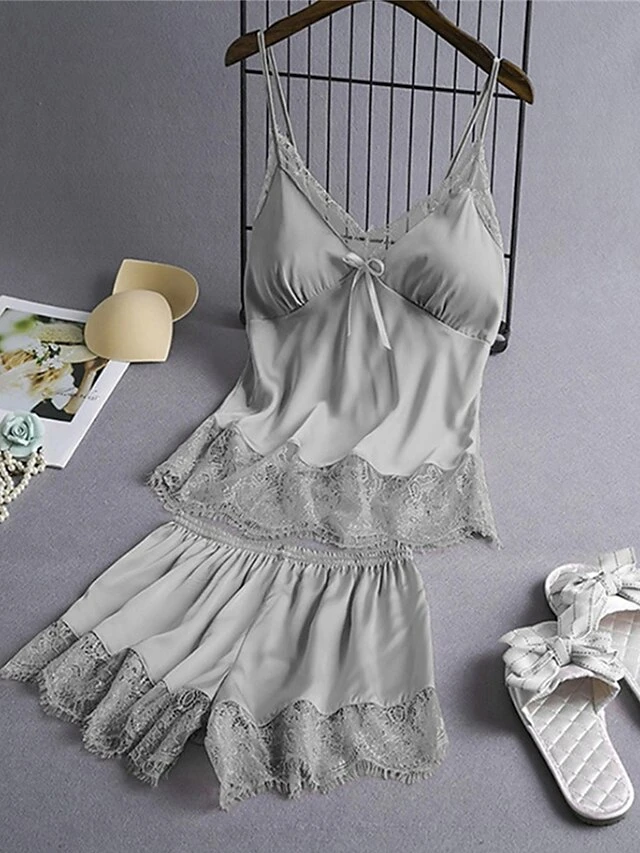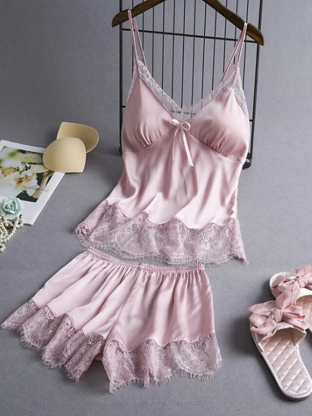 Women’s Plus Size Sexy Lingerie Lingerie Set Sets Pure Color Lovers Hot Comfort Home Bed Valentine’s Day Satin Breathable V Wire Sleeveless Strap Top Shorts Backless Summer Spring Black Pink