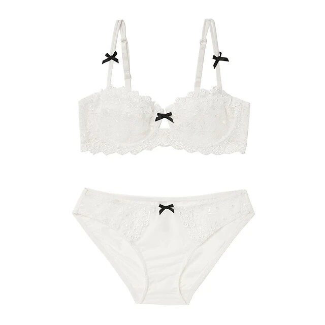 Women’s Push Up Bras Underwire Bras Fixed Straps Double Strap 3/4 Cup Jacquard Pure Color Hook & Eye Nylon Lace Sexy 1 Set Wine White / Bra & Panty Set / Ultra Sexy Panty / Seamless Panty / Cotton