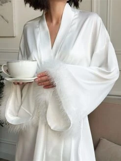Women’s Robe Leaves Plush Casual Comfort Home Daily Bed Flannel Warm Breathable Hoodie Long Sleeve Pocket Fall Winter Beige