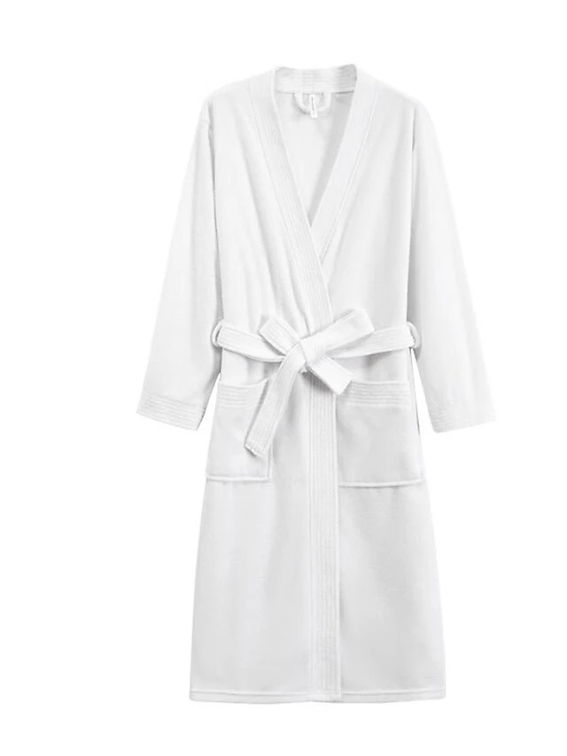 Women’s Robe Pure Color Simple Casual Comfort Home Bed Wedding Party Polyester Breathable V Wire Long Sleeve Fall Winter White Pink