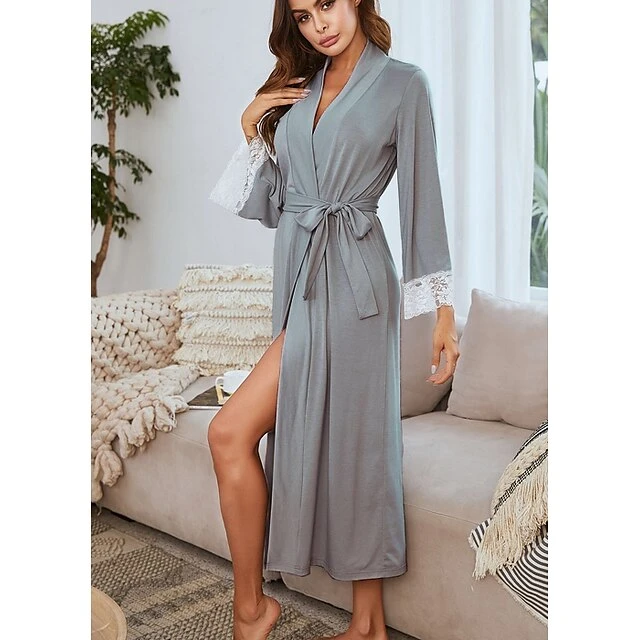 Women’s Robes Gown Bathrobes Nighty 1 PCS Print Casual Comfort Everyday Party Home Wedding Party Satin Gift Print Belt Included Winter Fall Wine Gray / Silk / Spa
