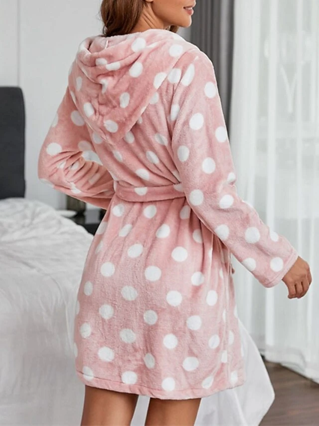 Women’s Robes Gown Pjs Dot Comfort Soft Home Bed Polyester Hoodie Long Sleeve Pocket Hoodie Fall Winter Pink