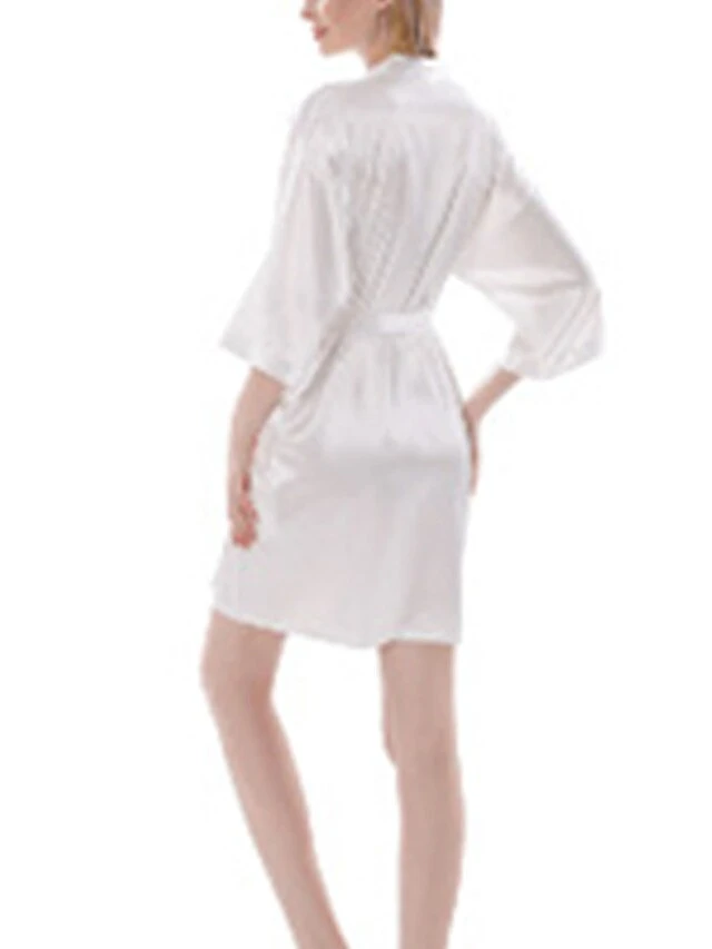 Women’s Satin Silk Robe Bathrobe Robes Gown Pure Color Fashion Casual Comfort Home Daily Bed Satin Breathable V Wire Half Sleeve Summer Fall Black White