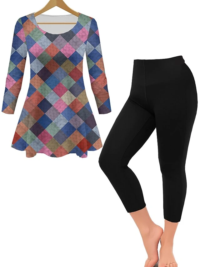 Women’s Sets 2 Pieces Flower Casual Comfort Home Daily Polyester Breathable Crew Neck Long Sleeve Pullover Pant Summer Spring Black Dark Blue