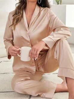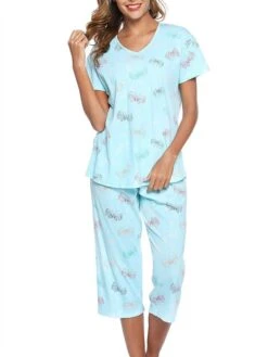 Women’s Pajama Top And Pant Stripe Comfort Home Daily Polyester Crew Neck Summer Spring Yellow Pink