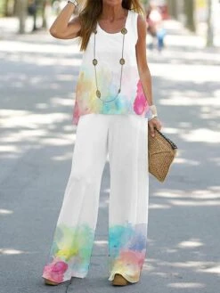 Women’s Pajama Top And Pant Stripe Comfort Home Daily Polyester Crew Neck Summer Spring Yellow Pink