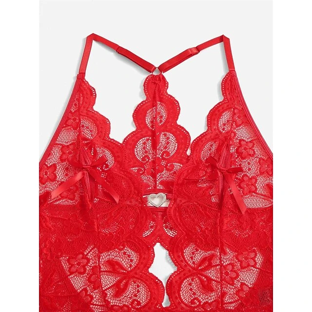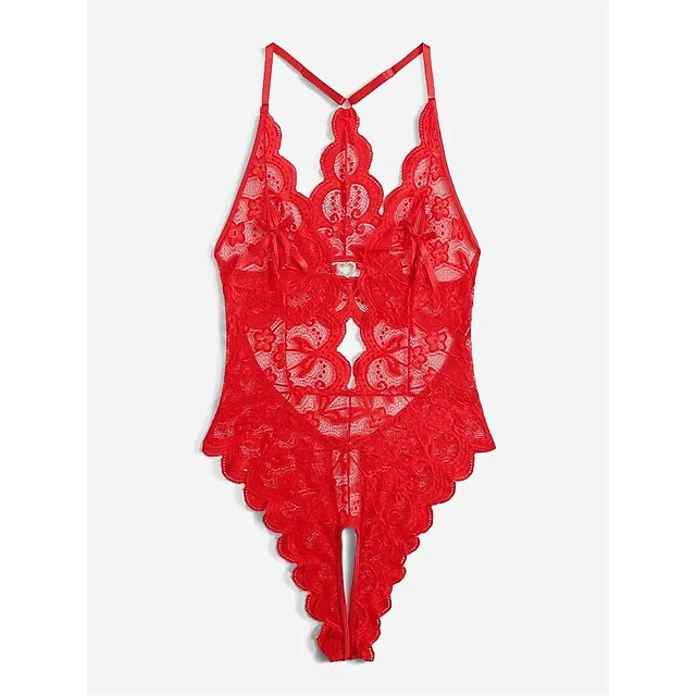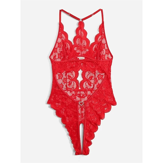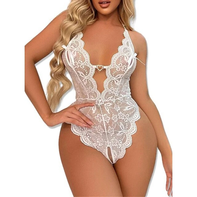 Women’s Sexy Bodies Teddies & Bodysuits Pure Color Lovers Hot Home Bed Valentine’s Day Spandex Breathable Plunging Neck Sleeveless Backless Summer Spring Black White