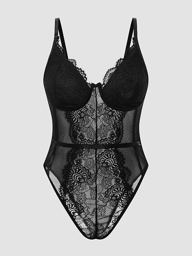 Women’s Sexy Lingerie Teddies & Bodysuits Pure Color Lovers Hot Home Bed Valentine’s Day Lace Breathable Straps Sleeveless Backless Summer Spring Black White