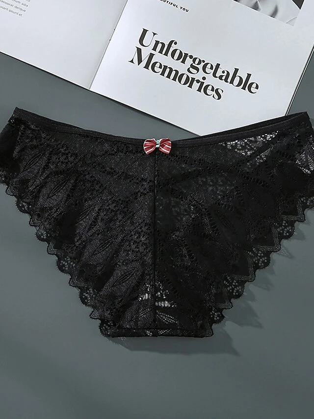 Women’s Sexy Panties Brief Underwear 1pc / Pack Underwear Sexy Criss Cross Bow Hole Lace Nylon Mid Waist Sexy Black Khaki Red S M L