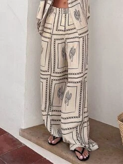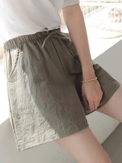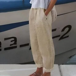 Women’s Loungewear Pants Pure Color Linen Casual Wear Plus Size For Spring Summer White Blue S 4XL