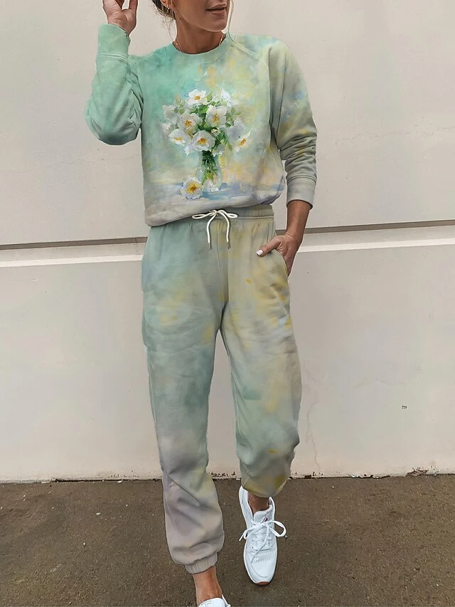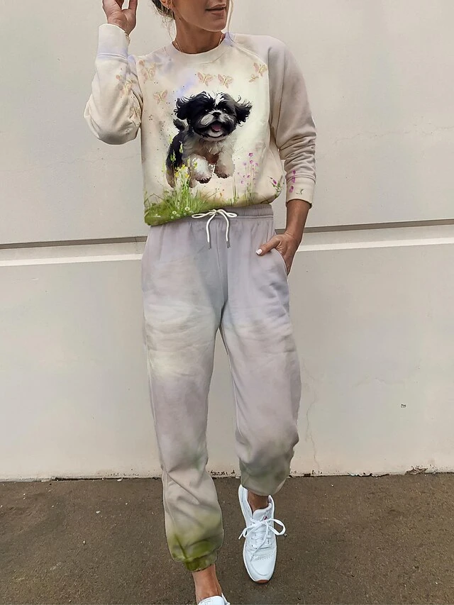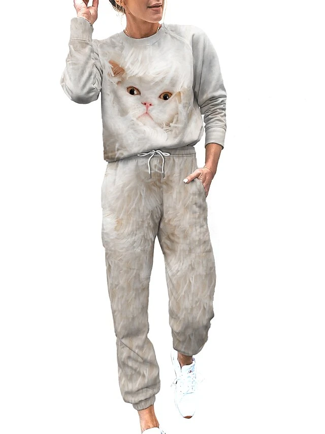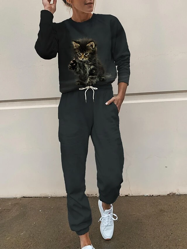 Women’s Sweatsuit Tracksuits Sets Cat Dog Fashion Sport Simple Home Daily Polyester Crew Neck Long Sleeve Hoodie Spring Fall Black White