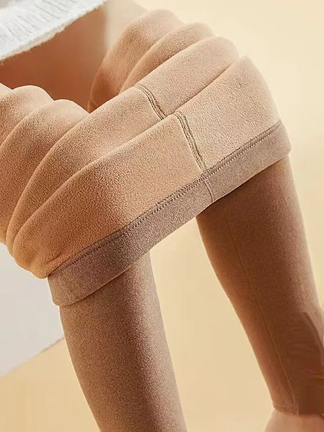 Women’s Thermal Pants Pure Color Warm Fashion Simple Home Daily Bed Polyester Warm Breathable Long Pant Pant Elastic Waist Fall Winter Pink Camel