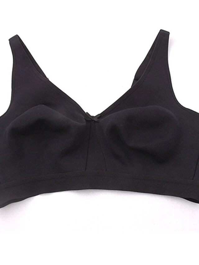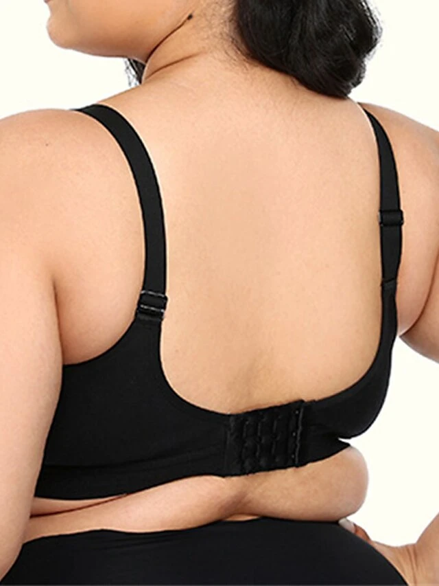 Women’s Wireless Bras Padded Bras Fixed Straps Full Coverage Deep U Breathable Pure Color Hook & Eye Date Casual Daily Cotton 1PC Black Khaki / Plus Size / Bras & Bralettes / 1 PC / Plus Size
