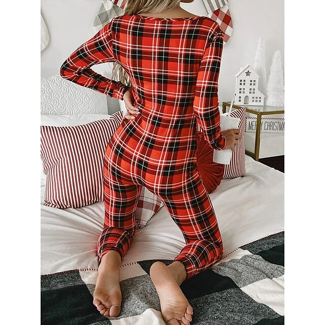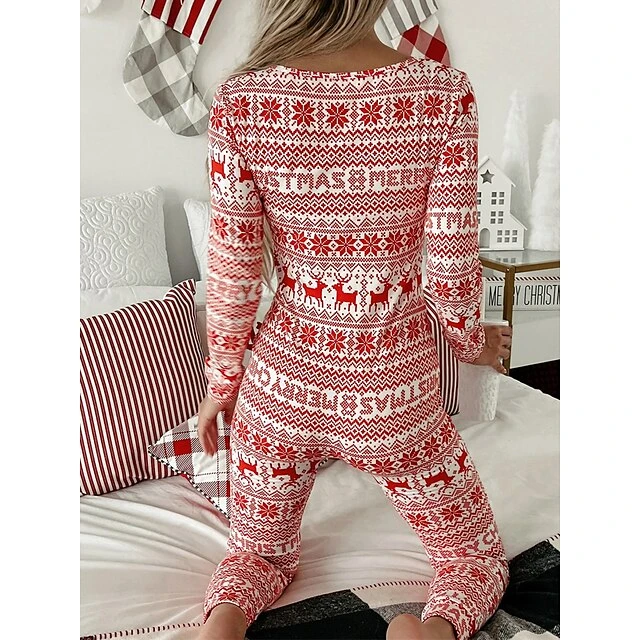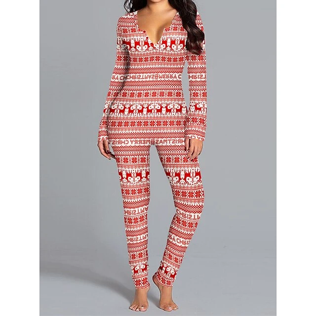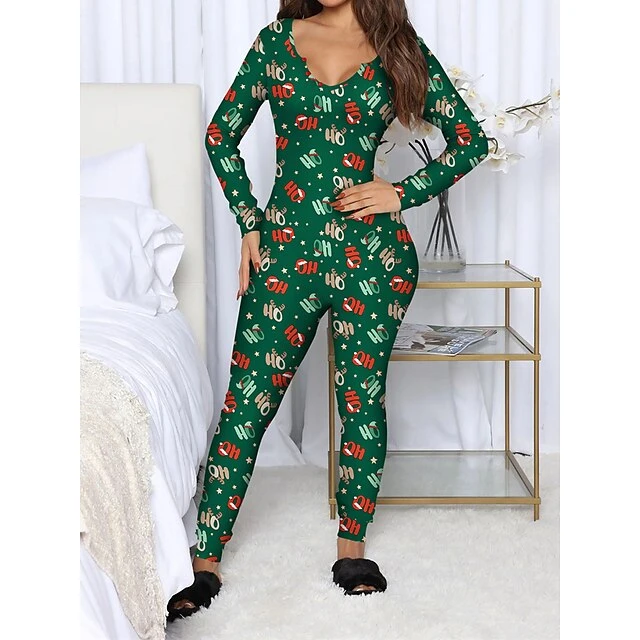 Women’s Xmas Onesie Pajama Letter Elk Casual Comfort Soft ChristmasBreathable V Wire Long Sleeve Fall Winter